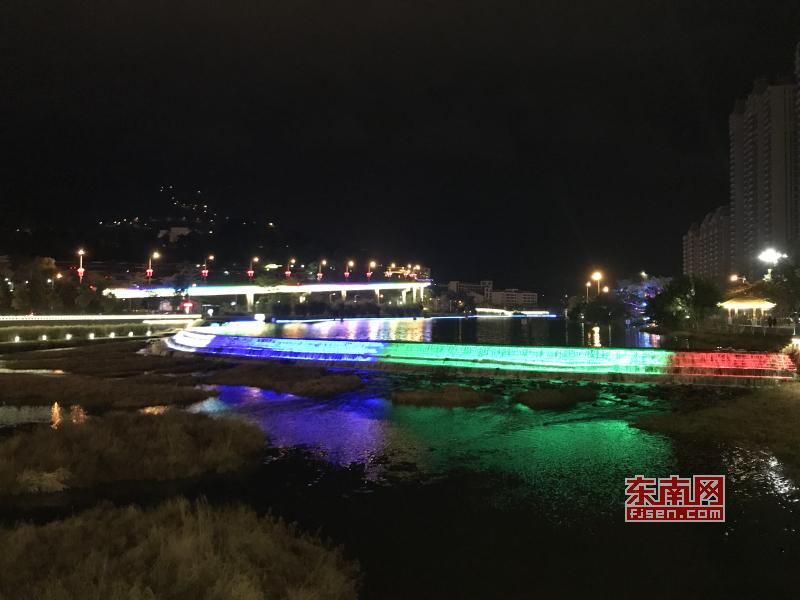 璀璨绚丽灯光扮靓莆田夜景 东南网莆田2月22日讯(本网记者 王龙风)火树银花,灯水交融,流光溢彩,夜色辉煌。春节期间正式亮灯的莆田泗华溪、绶溪公园华丽夜景,成为许多市民夜间游玩不可错过的绝佳去处,每天都有许多市民沿着泗华古桥—星光隧道—新延寿桥底—过溪桥—延寿古桥,这一“夜游画廊”,一睹两溪公园璀璨夜景的风采。 正月初六(2月21日),是春节长假的最后一个夜晚,东南网记者来到泗华溪、绶溪公园看到,处处色彩斑斓,一片灯火辉煌景象。走进公园内,一路上游人如织,来来往往好不热闹。色彩变换炫动的星光隧道,更是吸引了许多市民前来穿梭体验,许多小孩兴奋地追逐着地面上游动的“鱼儿”。